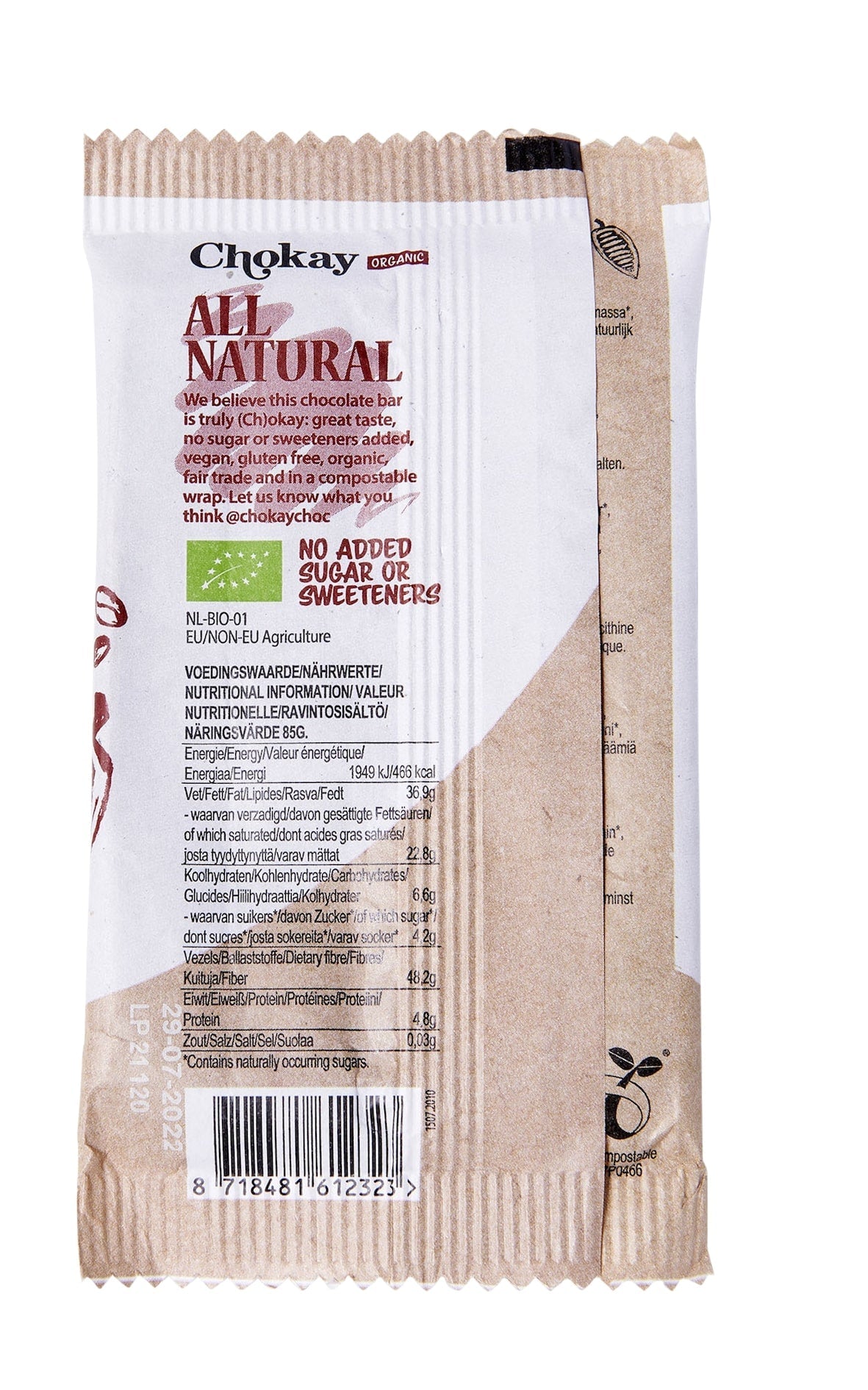 Diese Schoki ist völlig (Ch)okay! Köstliche belgische Bio-Zartbitterschokolade mit einem Hauch Vanille, OHNE Zusatz von Zucker und Süßungsmitteln, vegan, glutenfrei, fair gehandelt und in einer kompostierbaren Verpackung.